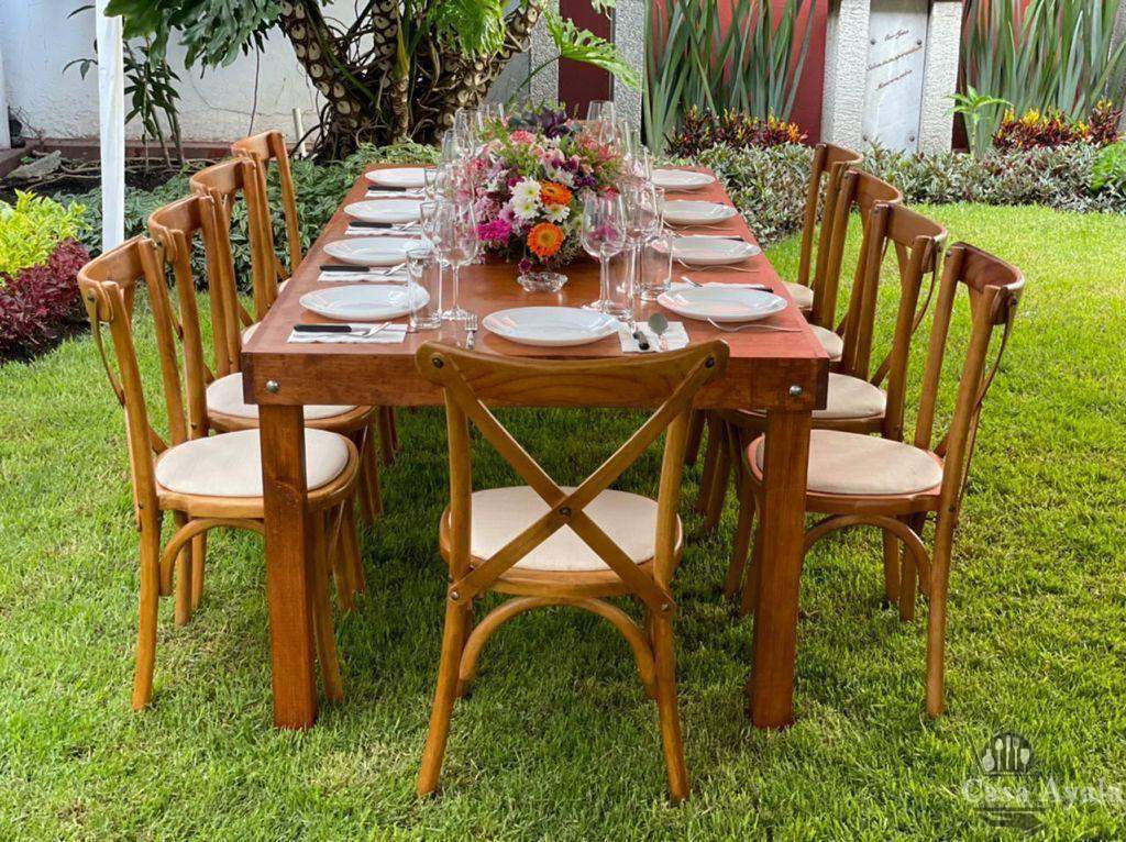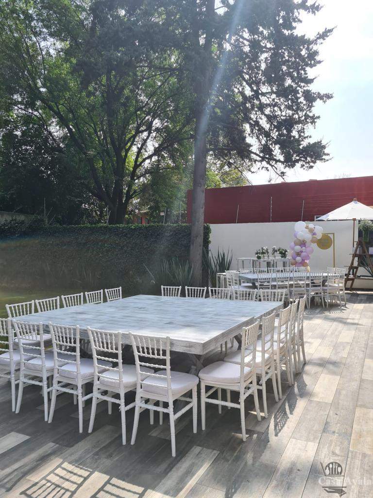 Renta de Sillas y Mesas para hacer lucir su evento social. SILLAS Y MESASEn plástico plegable, acojinadas plegables, con faldón y moño (varios colores)tipo tiffany.Mesa rectangular, redonda de 1.50 diámetro, imperial de 1.65 x 165 y tipo vintagepara 12 personas. . . . . . . Mesa rústica con silla Crossback, mide 1 x 2.20 Mesa rústica con silla Crossback, mide 1.50 x 1.50